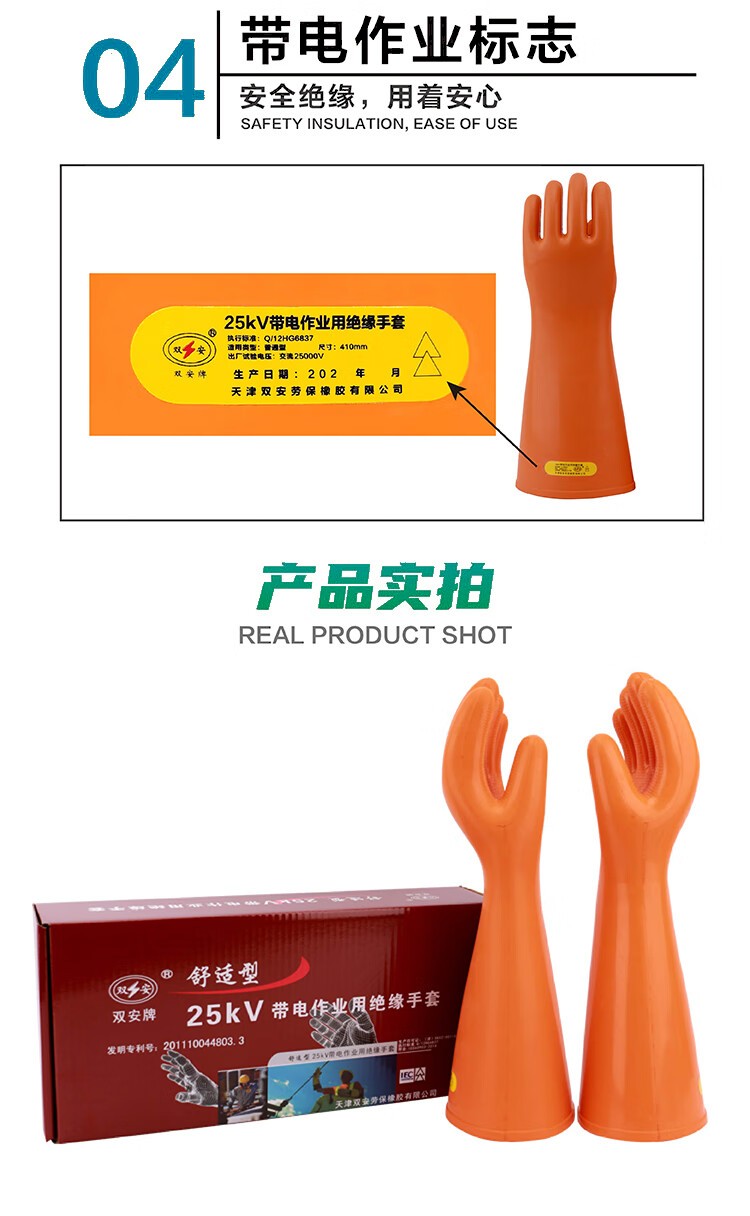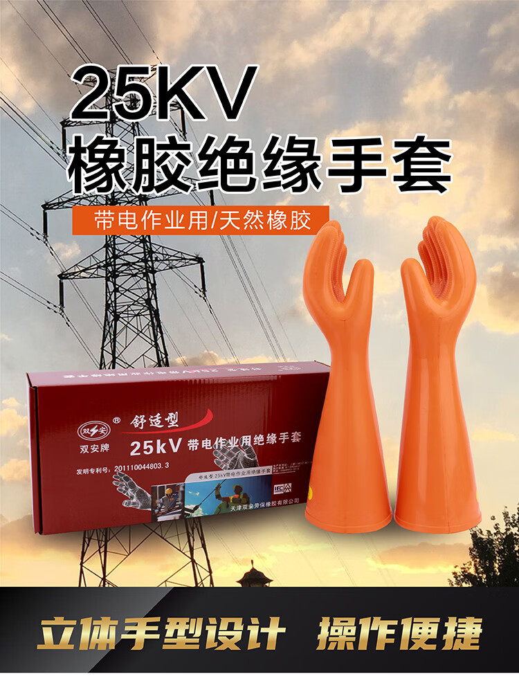 雙安25kv絕緣橡膠手套安全電力防電耐高壓帶電作業橡膠手套