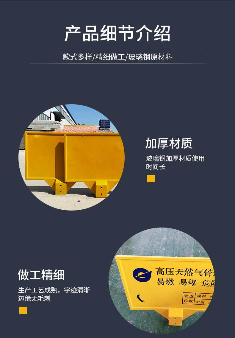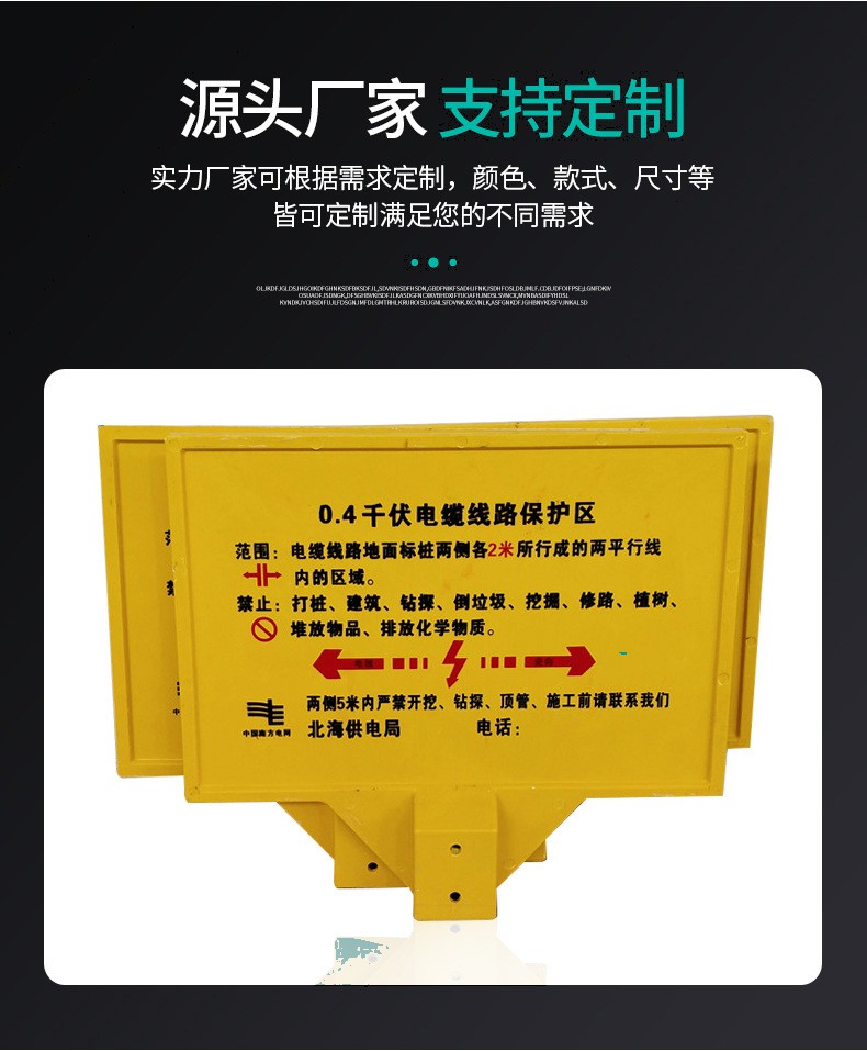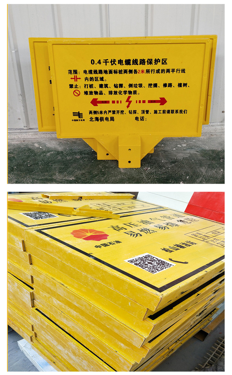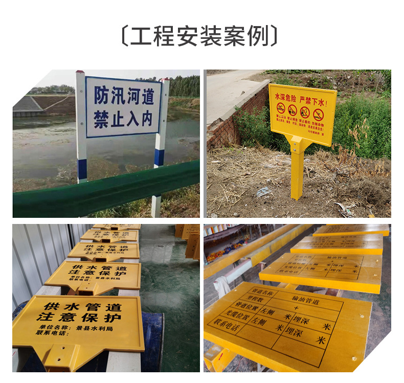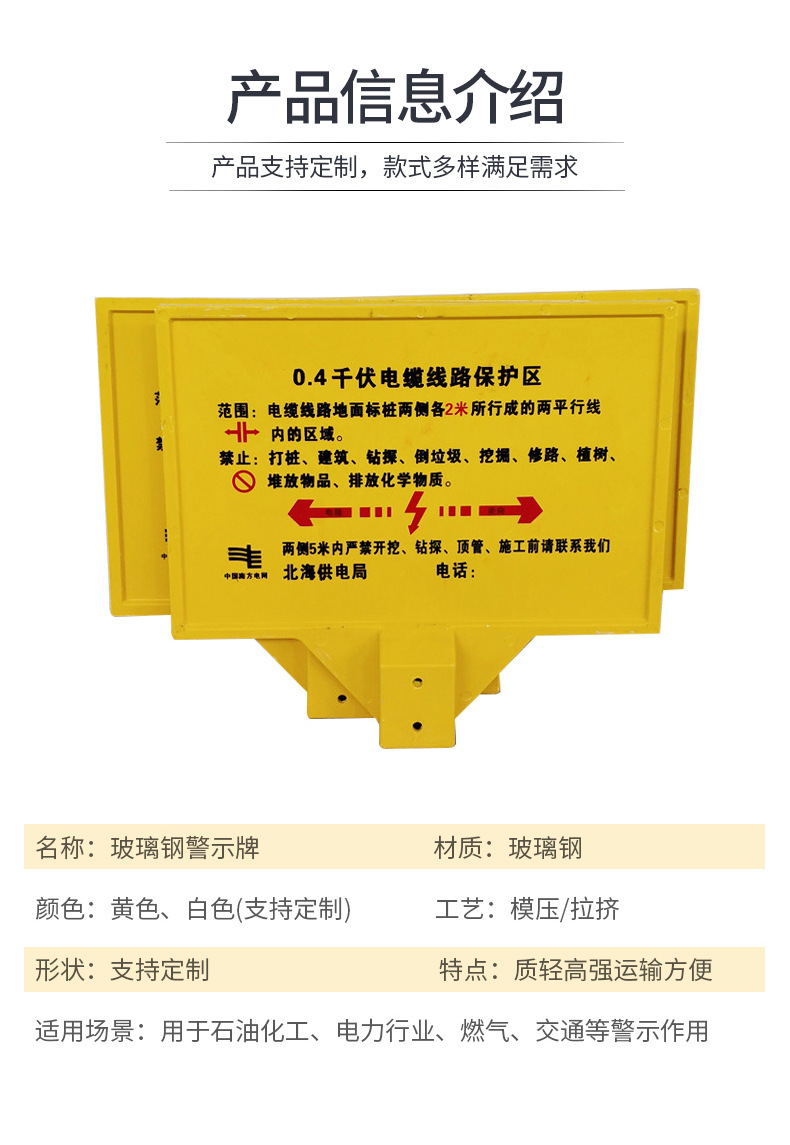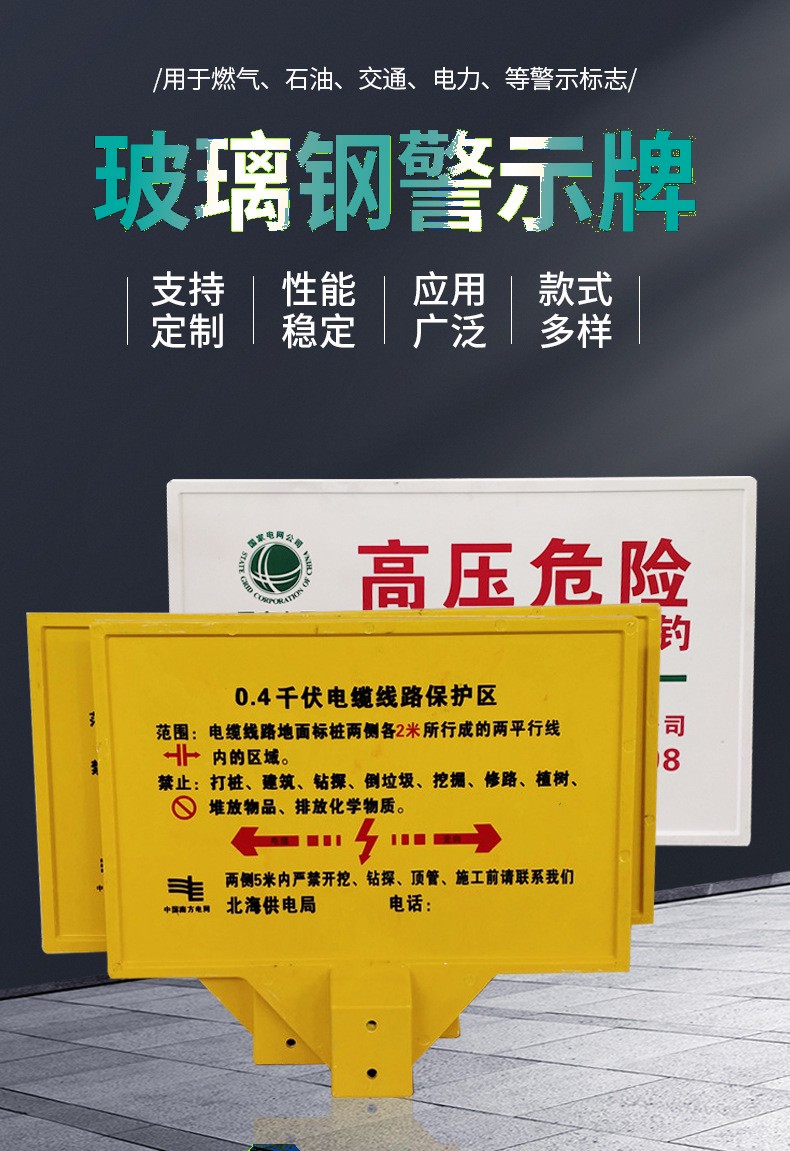 玻璃鋼警示牌,單雙立柱下有電纜標牌,燃氣供水標志牌
