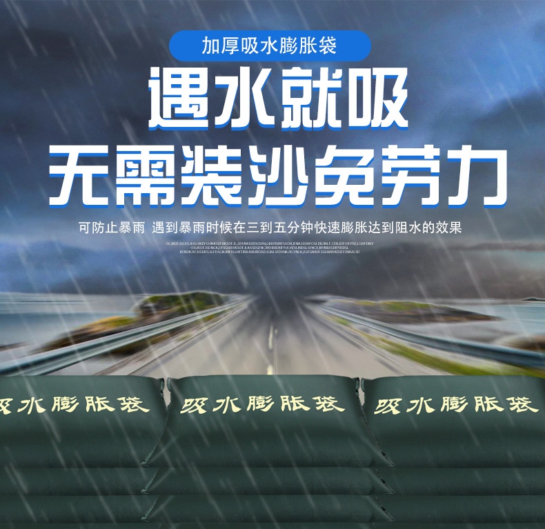 自吸水膨脹袋 防洪防汛專用吸水帶 物業車庫門口擋水無紡布袋